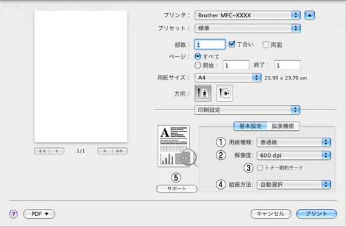 「600 dpi」:1 インチあたり600 × 600 ドットの解像度で印刷します。