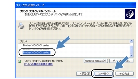 プリンタのリストからお使いのモデル名を選択し、[次へ]をクリックします。 |