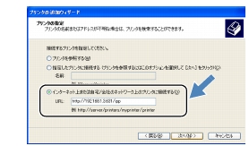 [インターネット上または自宅/会社のネットワーク上のプリンタに接続する]をクリックし、[URL:]ボックスに次のURLを入力します。