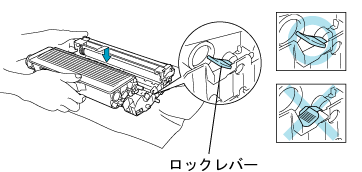 13. 青色のロックレバーを押し下げながら、ドラムユニットからトナーカートリッジを取り外します。