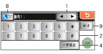 国際電話(国外へのファクス送信)の登録などでポーズを入力するときに使用します。約3秒間の待ち時間を認識させることができます。入力すると画面には「p」で表示されます。