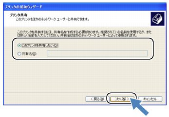 本機を共有するかどうかを選び、共有する場合は「共有名」を入力して、[次へ]をクリックします。