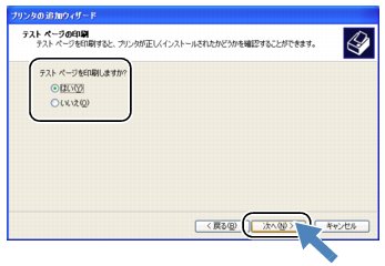 テストページを印刷するかどうかを選び、[次へ]をクリックします。