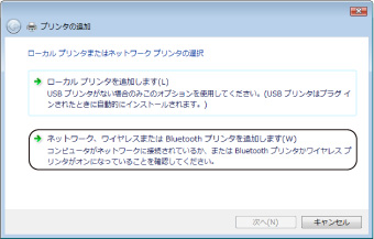 [ネットワーク、ワイヤレスまたはBluetoothプリンタを追加します]をクリックする