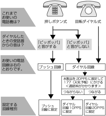 回線種別は、次の手順で調べることができます。もし、分からないときは、ご利用の電話会社にお問い合わせください。