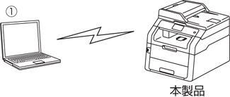 アドホックモードのネットワークでは、無線LANアクセスポイント/ルーターが存在しません。それぞれの無線LAN機器は個別に直接通信します。本製品をアドホックモードに設定している場合は、コンピューターからすべての印刷ジョブを直接受け取ります。