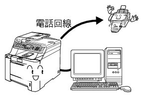PCファクスは、本製品のような複合機にコンピュータを接続し、コンピュータの画面からファクスをやり取りできるようにしたものです。送信時・受信時とも原稿を印刷する必要がないため、用紙やトナー代が節約できます。データのやり取りには、通常のファクス同様、電話回線を使用するので、通信料金が発生します。