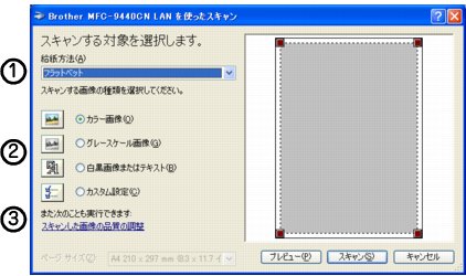 | スキャナ(Windows®) > アプリケーションから直接スキャンする > WIAドライバを使ってスキャンする(Windows® XP/Windows Vista®のみ) |