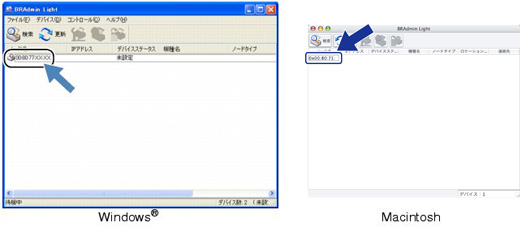 BRAdmin Lightで表示される本製品のお買い上げ時ノード名は、有線LANの場合は[BRNxxxxxxxxxxxx]、無線LANの場合は[BRWxxxxxxxxxxxx]となっています。(「xxxxxxxxxxxx」は MACアドレス(イーサネットアドレス)の 12桁です。)