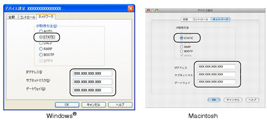 | ネットワークを設定する > BRAdmin Lightで設定する > IPアドレス、サブネットマスク、ゲートウェイを設定する |