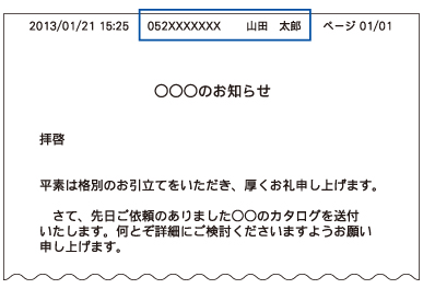 登録した名前とファクス番号は、ファクス送信したときに相手側の記録紙の一番上に印刷されます。