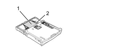 1. はがき(1)をスライドトレイ(2)にセットする