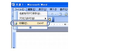 2. はがき用データを作成したアプリケーションソフトの[ファイル]メニューから[印刷]を選ぶ