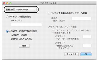 本製品のスキャンボタンを押してネットワークスキャン機能を使う場合は、あらかじめ受信するMacintoshで「スキャンキーへの登録」設定が必要です。次の手順で設定してください。