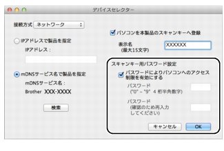 スキャンした画像データをMacintoshに保存するとき、パスワードを入力しないと保存できないように設定できます。