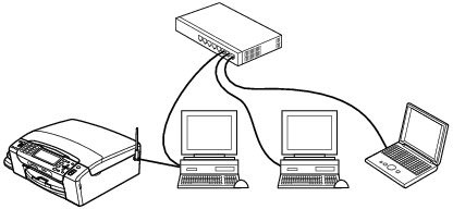 プリンターに直接接続されているパソコンにのみプリンターポートを設定し、そのパソコンを経由して他のパソコンも本製品を共有します。ただし、本製品に接続されているパソコンの電源が入っていないと、他のパソコンは本製品を使用できません。